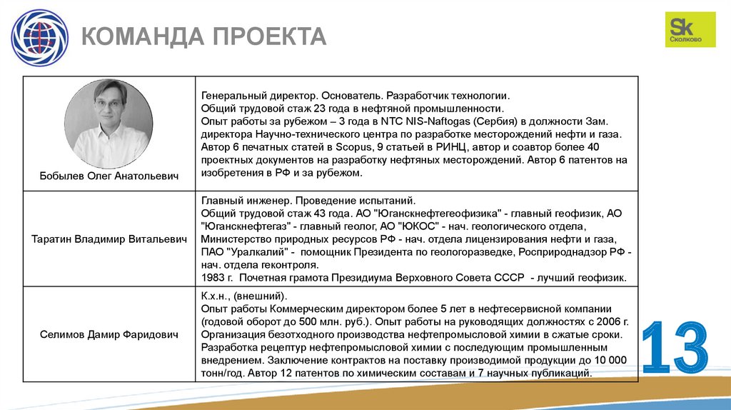 КОМАНДА ПРОЕКТАБобылев Олег Анатольевич