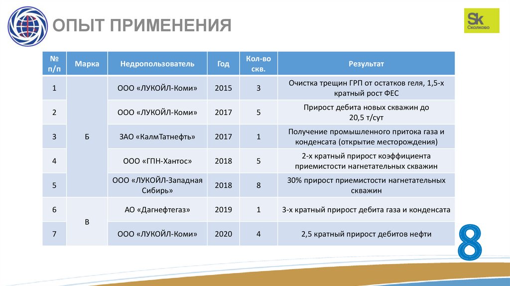ОПЫТ ПРИМЕНЕНИЯЗакачано – 35 м3