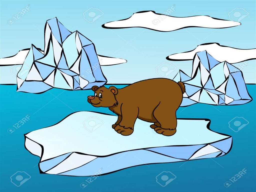летает над цветком, бурый медведь на льдине.