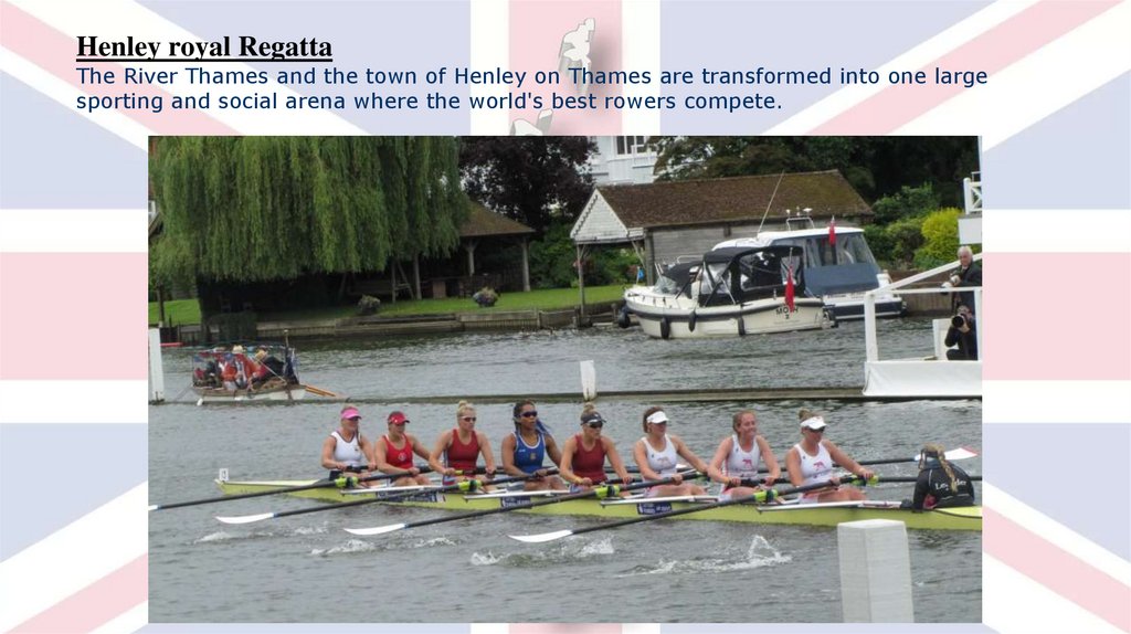 Henley royal RegattaThe River Thames and the town of Henley on Thames are transformed into one large