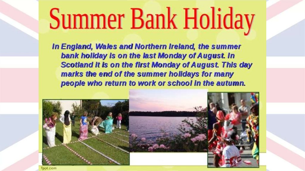 holidays in Britain are called bank holidays, because the banks as well as most of the offices