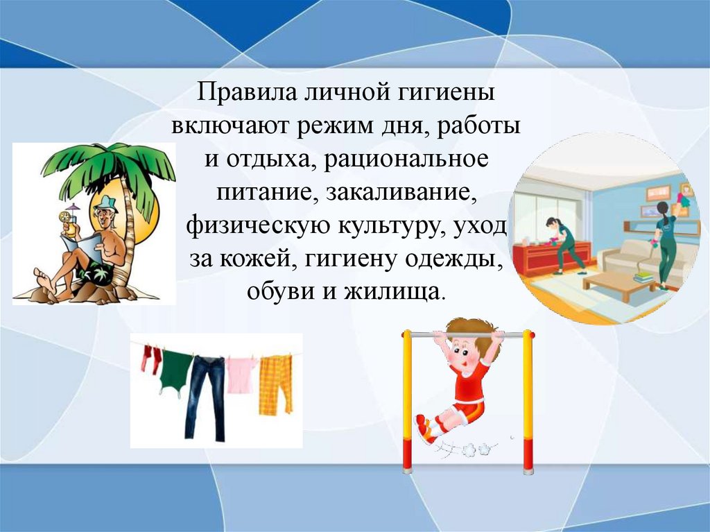 Правила личной гигиенывключают режим дня, работы