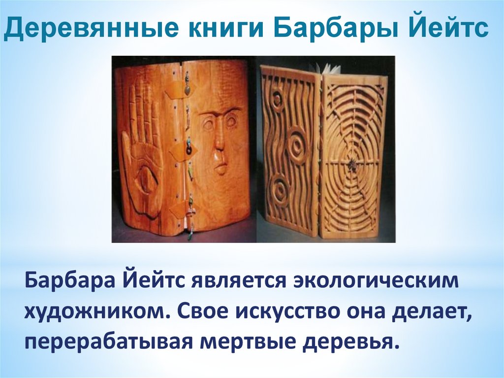 Деревянные книги Барбары ЙейтсБарбара Йейтс является экологическим