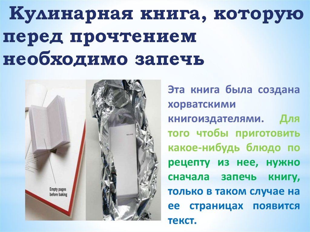 сначала запечь книгу,