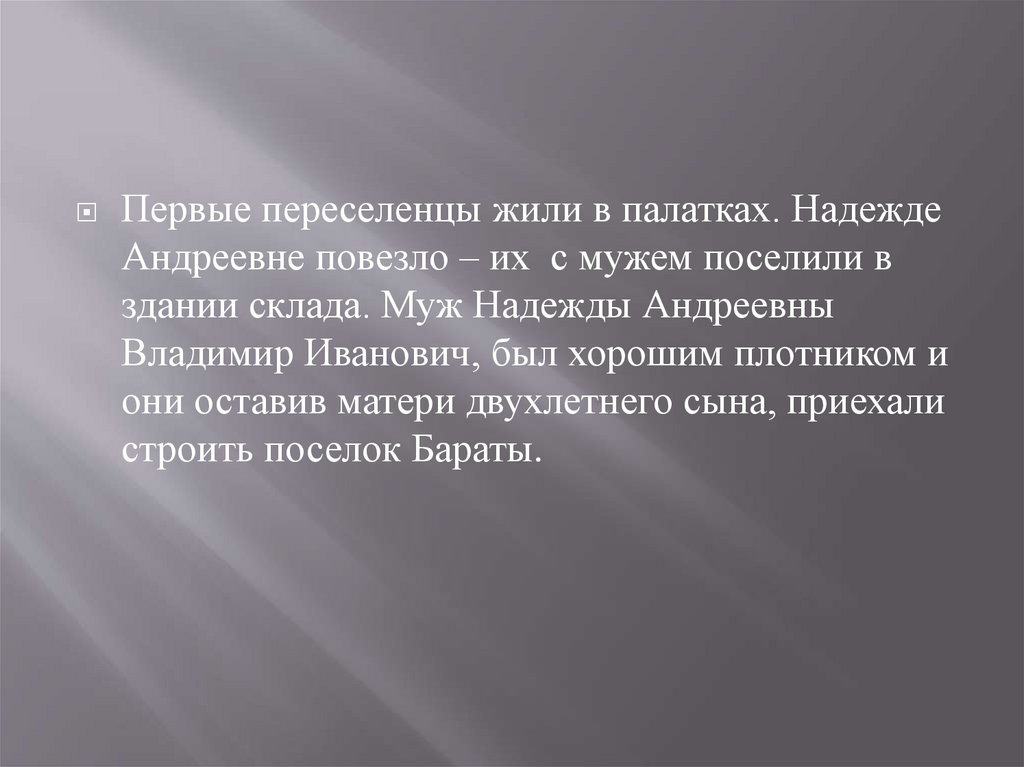 Первые переселенцы жили в палатках. НадеждеАндреевне повезло – их с мужем поселили в