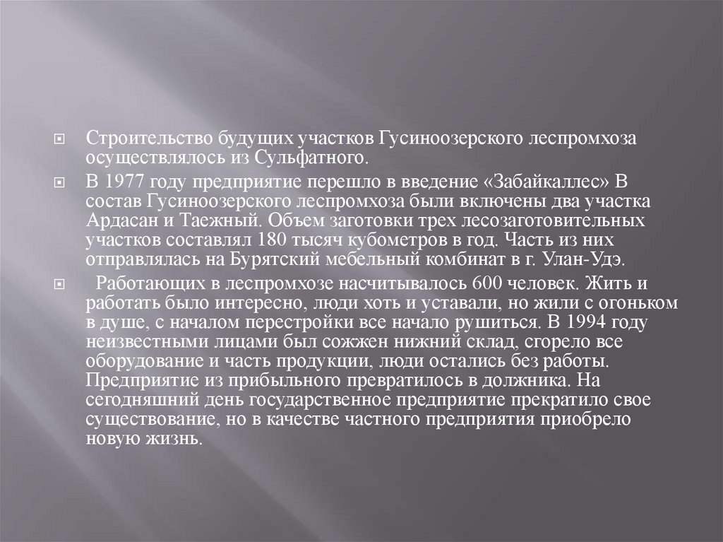 Центральная усадьба Гусиноозерскоголеспромхоза – поселок Бараты был основан