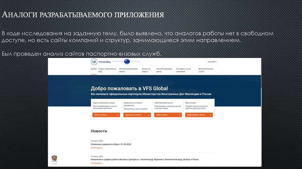 Был проведен анализ сайтов паспортно-визовых служб.