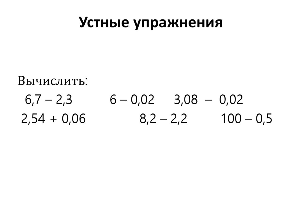 Устные упражненияВычислить: