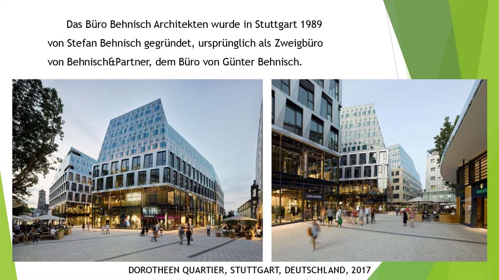 Das Büro Behnisch Architekten wurde in Stuttgart 1989von Stefan Behnisch gegründet, ursprünglich als Zweigbüro