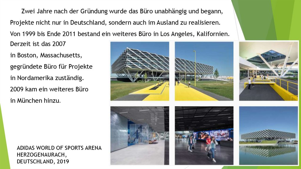 Zwei Jahre nach der Gründung wurde das Büro unabhängig und begann,Projekte nicht nur in Deutschland, sondern auch im Ausland zu realisieren.