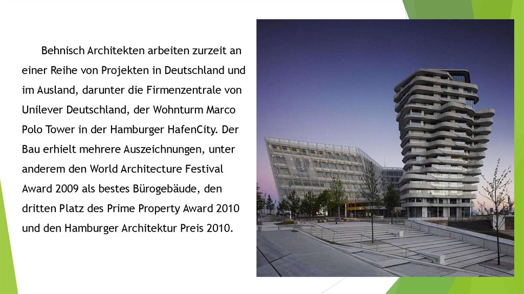 Behnisch Architekten ist ein weltweit agierendes Architekturbüro mit einembreiten Leistungsspektrum. Das Architekturbüro Behnisch Architekten bearbeitet