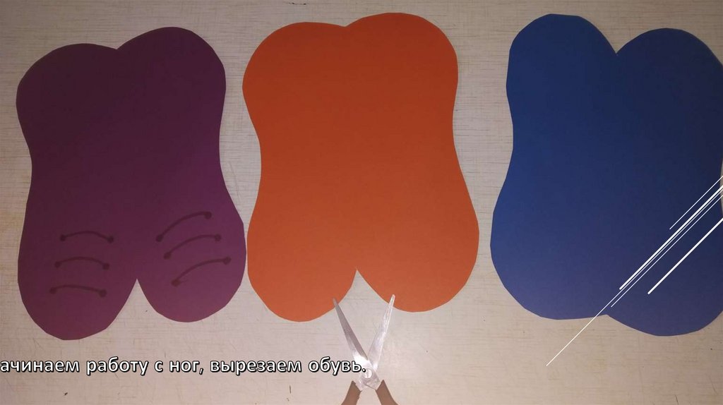 Дальше, надуваем шарик, завязываем его на узелок. В шаблоне обувь делаем две дырочки, я делала ножницами.