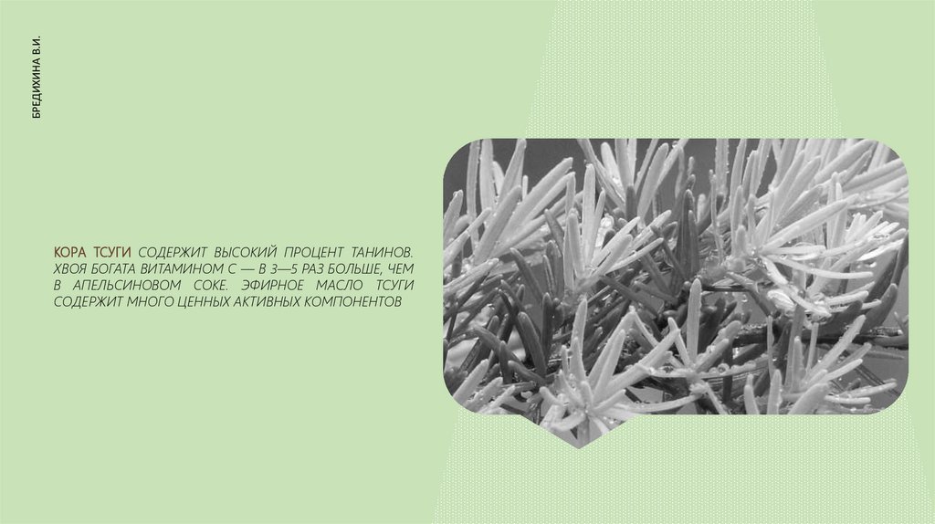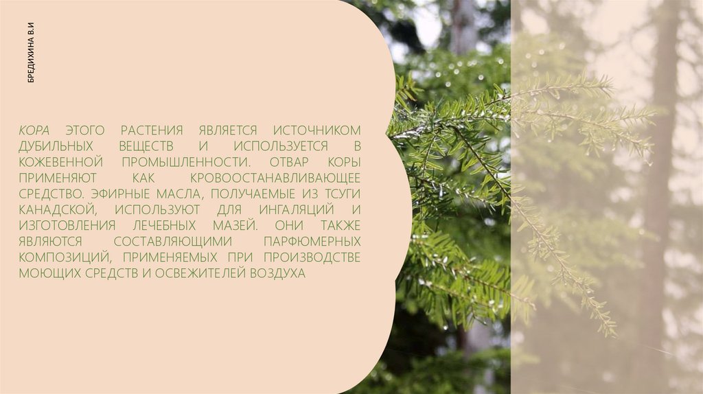БРЕДИХИНА В.И.КОРА ТСУГИ СОДЕРЖИТ ВЫСОКИЙ ПРОЦЕНТ ТАНИНОВ.