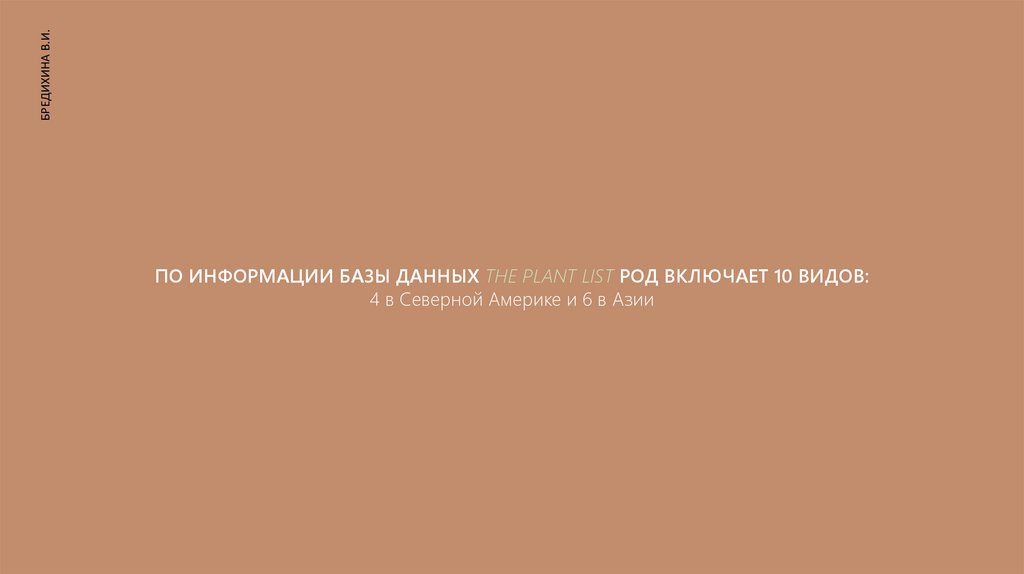 БРЕДИХИНА В.И.ПО ИНФОРМАЦИИ БАЗЫ ДАННЫХ THE PLANT LIST РОД ВКЛЮЧАЕТ 10 ВИДОВ: