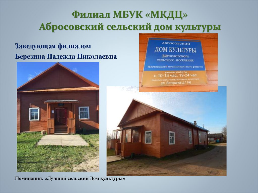 Филиал МБУК «МКДЦ»Абросовский сельский дом культуры