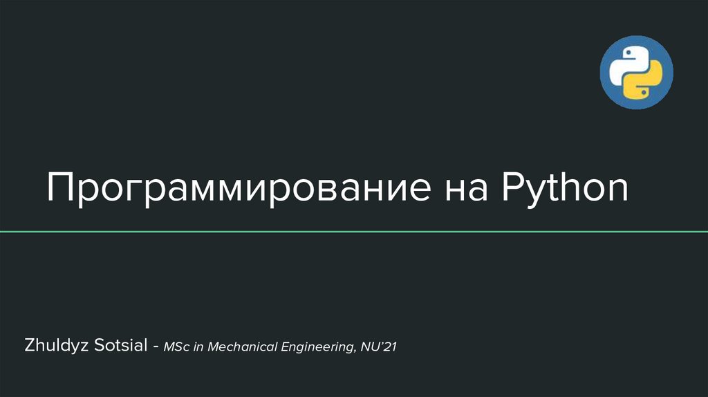 Программирование на PythonZhuldyz Sotsial - MSc in Mechanical Engineering, NU’21