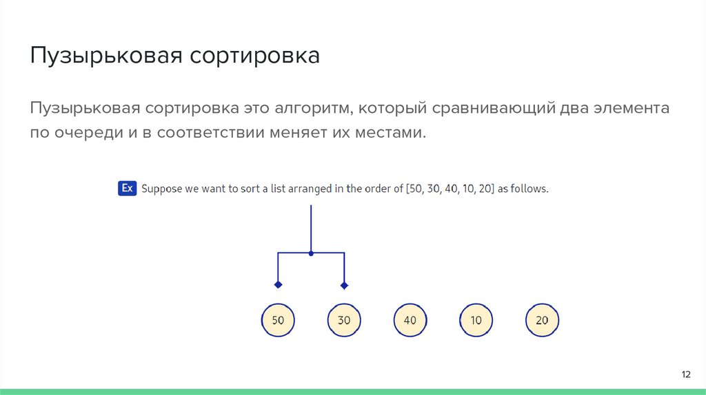 Пузырьковая сортировкаПузырьковая сортировка это алгоритм, который сравнивающий два элемента
