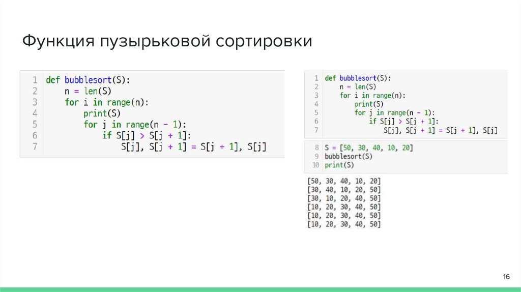 Функция пузырьковой сортировки16