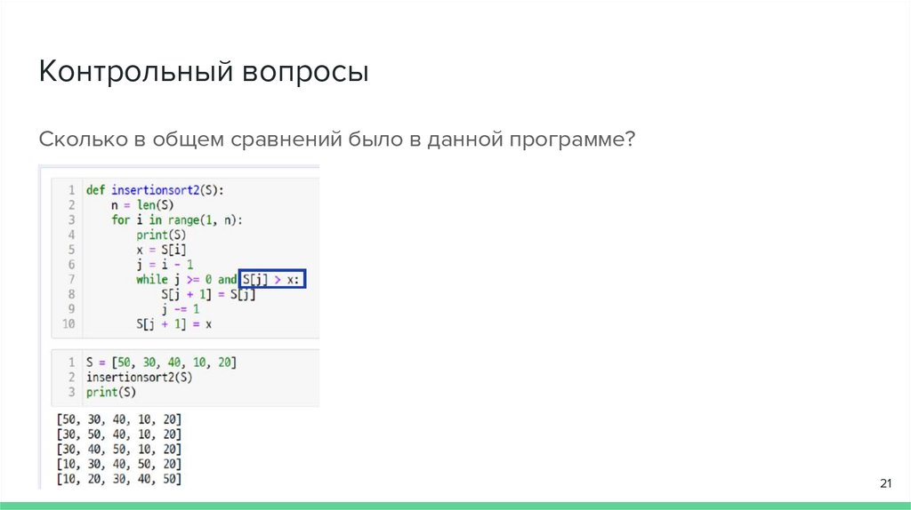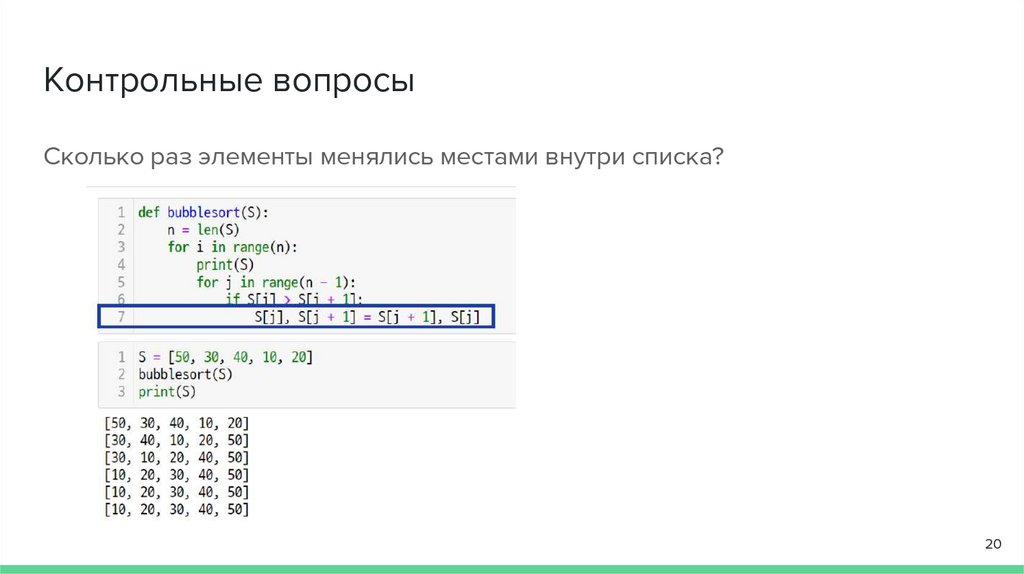 Контрольные вопросыСколько раз элементы менялись местами внутри списка?