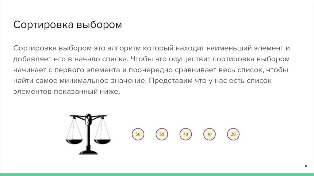 Сортировка выборомСортировка выбором это алгоритм который находит наименьший элемент и