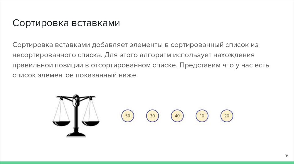 правильной позиции в отсортированном списке. Представим что у нас есть