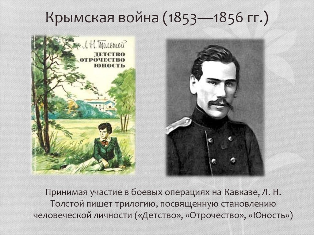 Крымская война (1853—1856 гг.)Принимая участие в боевых операциях на Кавказе, Л. Н.