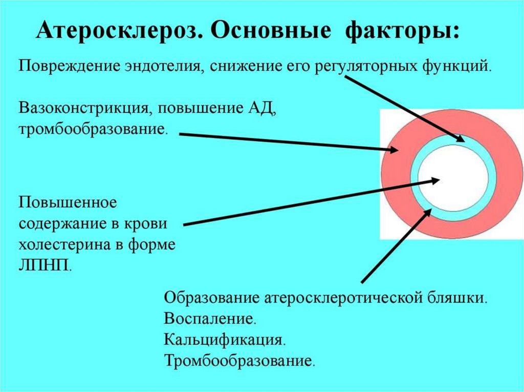 фиброзных бляшек, постепенно суживающих и закрывающих