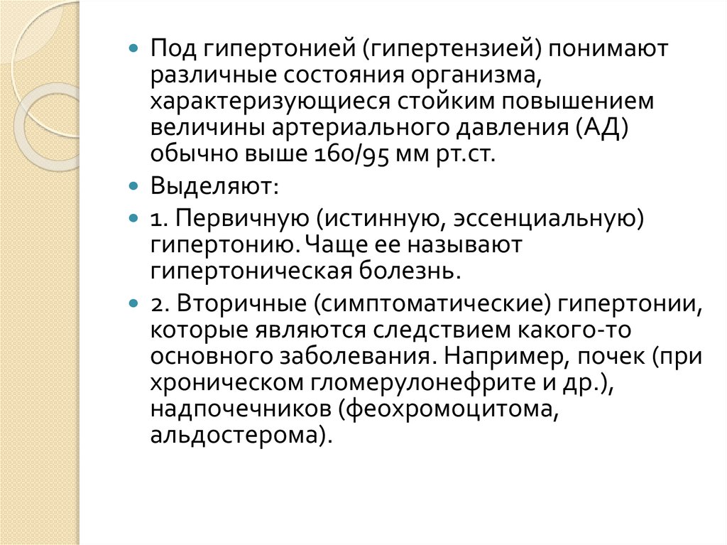 Под гипертонией (гипертензией) понимаютразличные состояния организма,