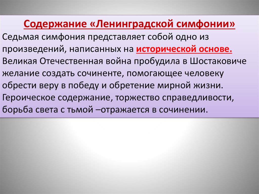 Содержание «Ленинградской симфонии»Седьмая симфония представляет собой одно из