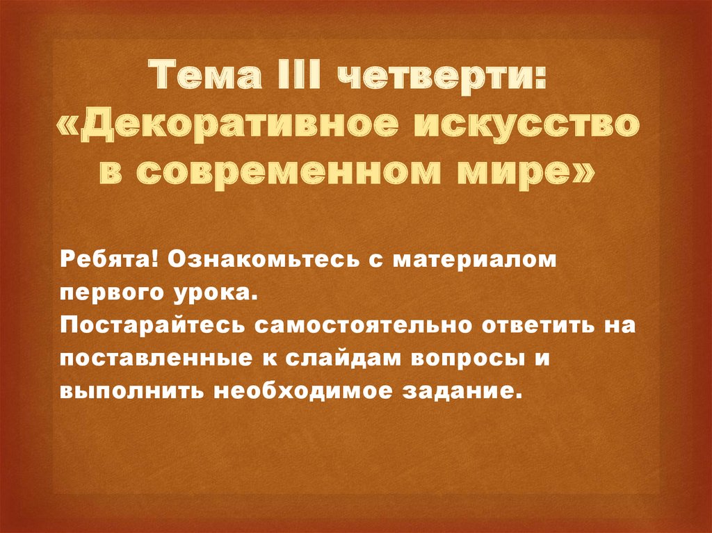Тема III четверти:«Декоративное искусство
