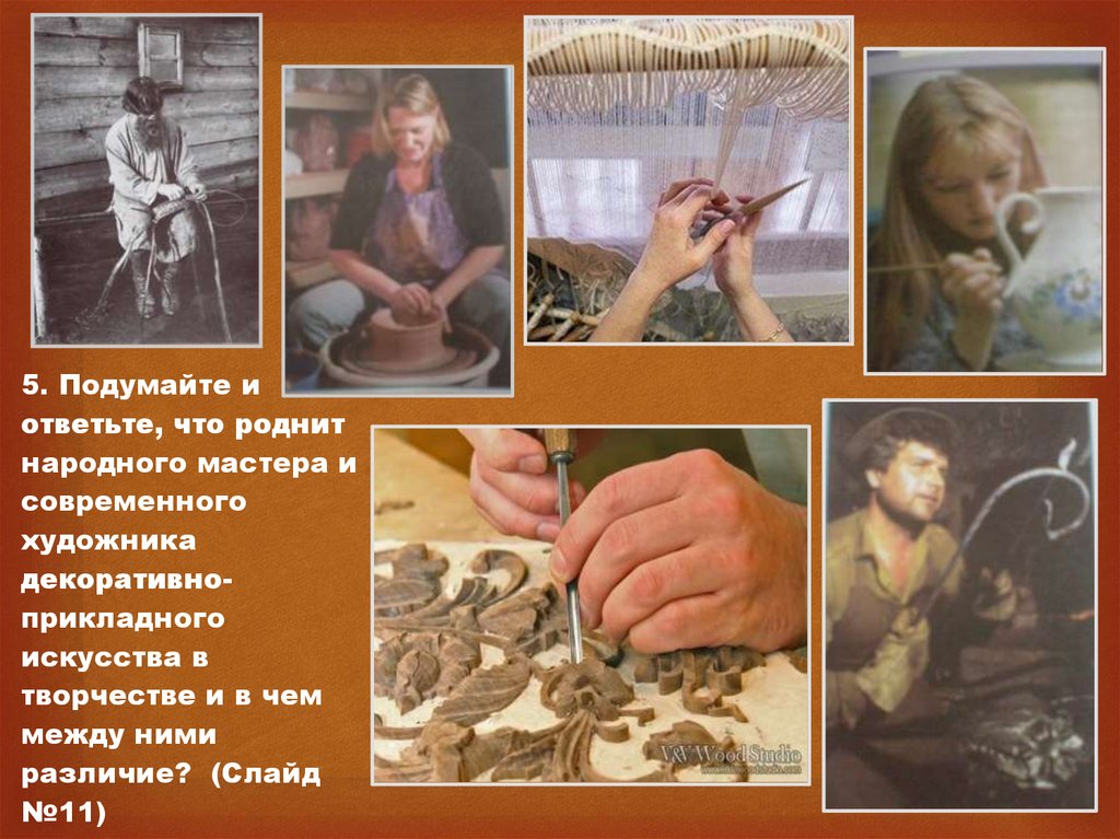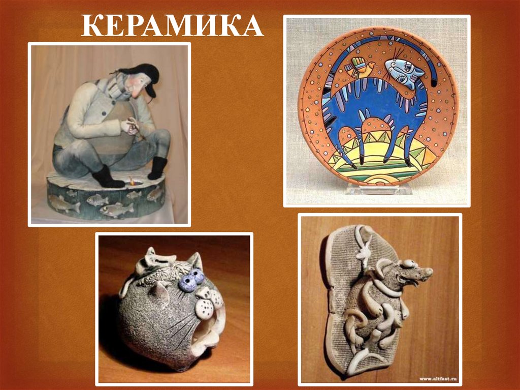 материалу (дерево, вышивка на ткани, глина) (Слайд