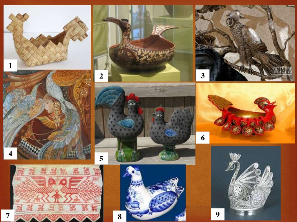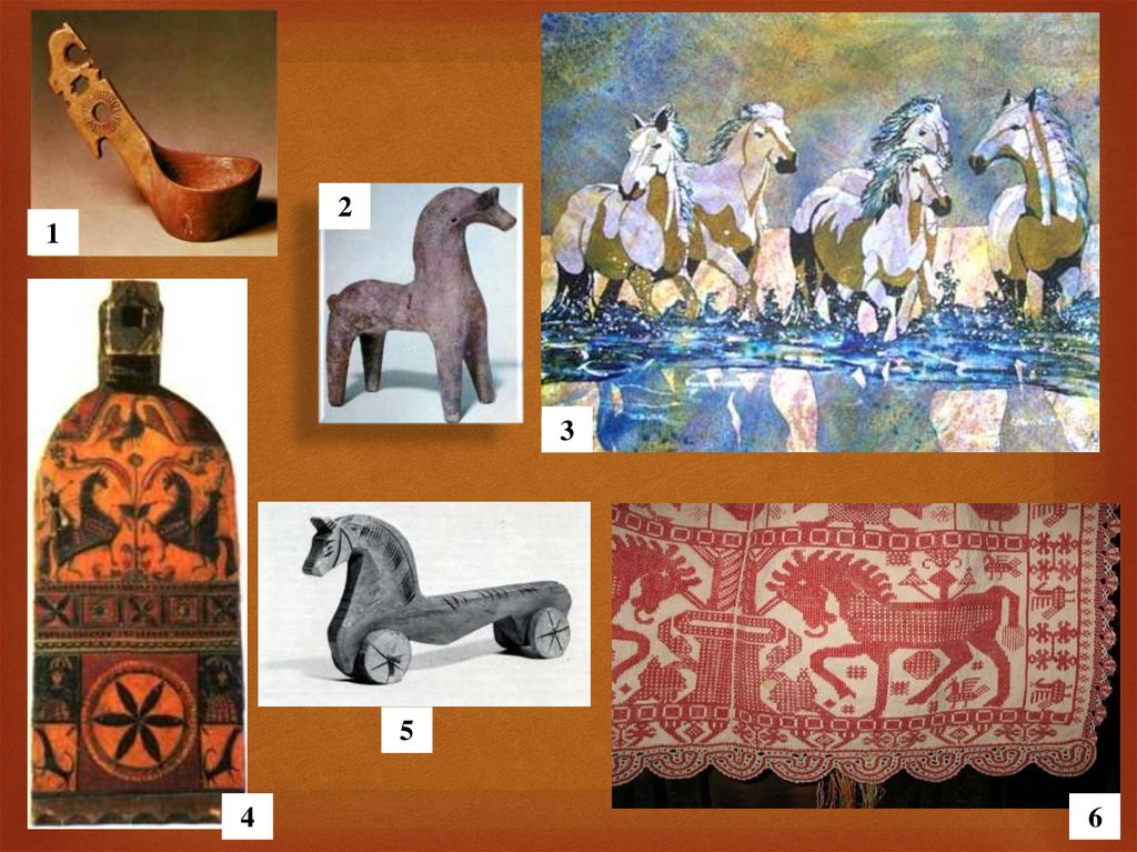 теме изображения (птица, конь, дерево жизни);
