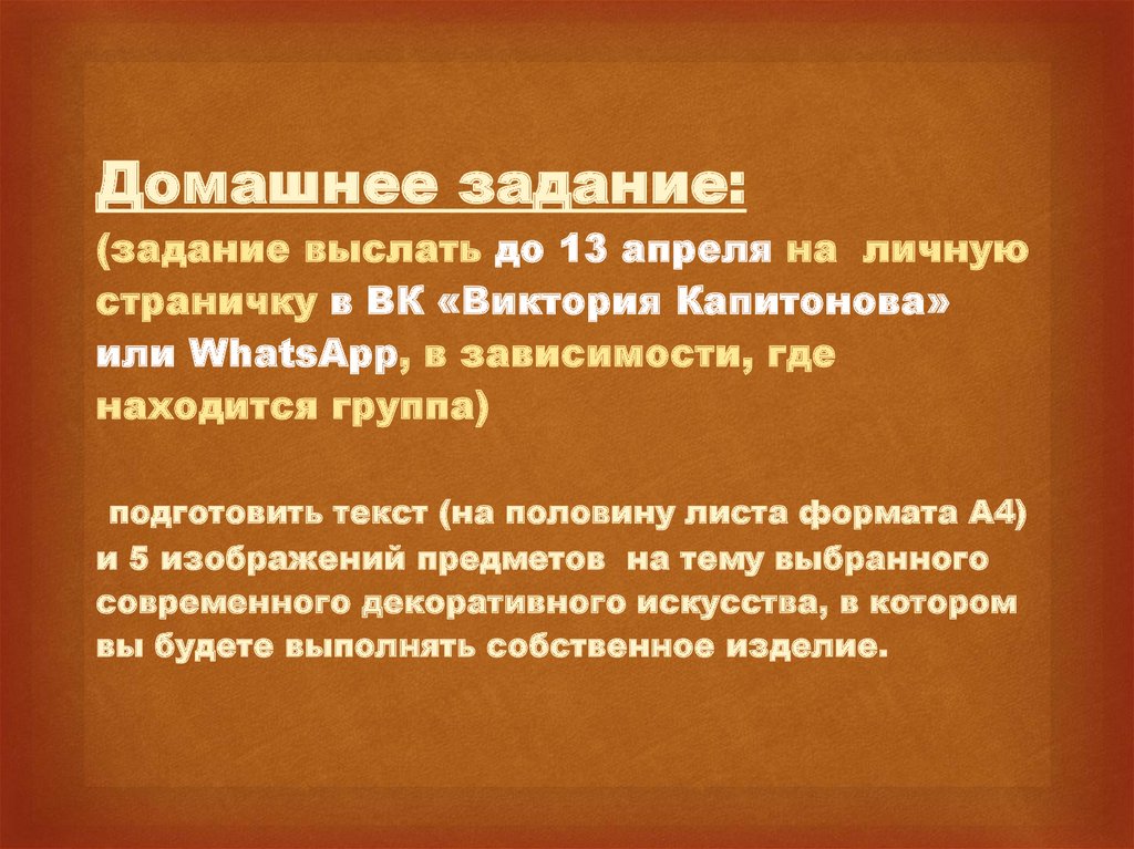 декоративно-прикладного искусства, в котором вы выполните