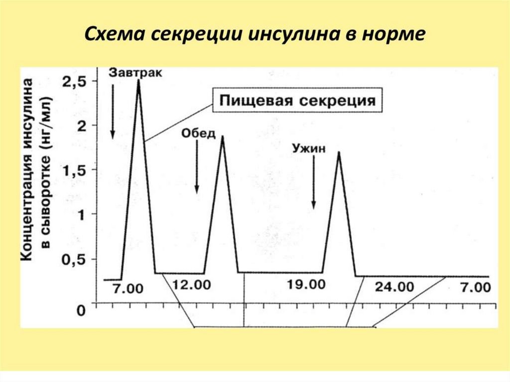 Физиологическая секреция –1 -1,5 ед инсулина в час!