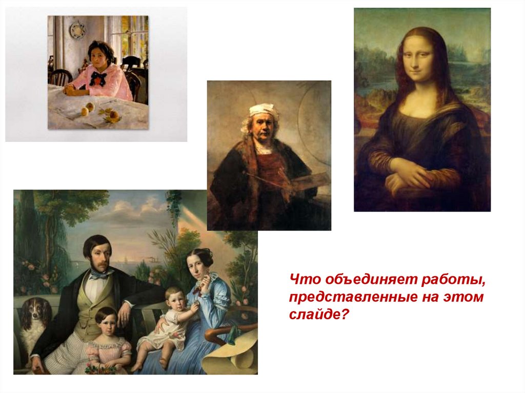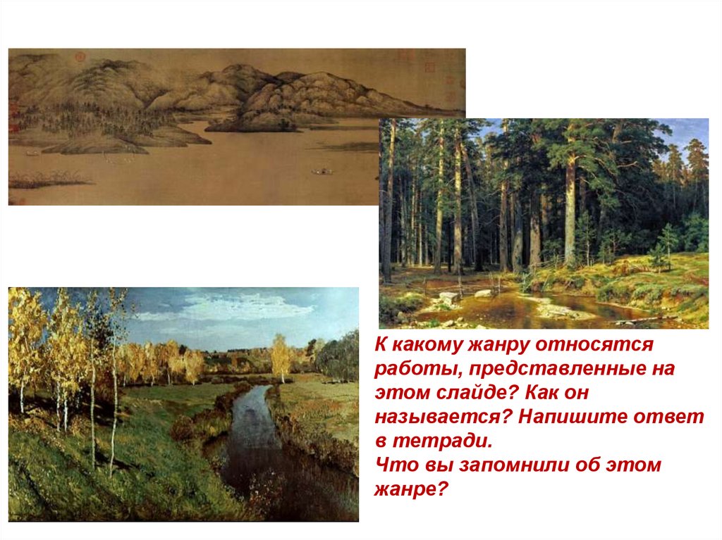 К какому жанру относятся работы, представленные на этомслайде? Как он называется? Напишите ответ в тетради.