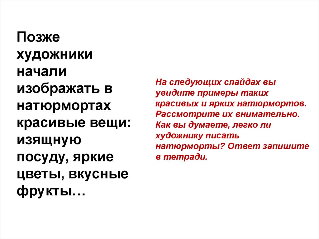 о жанре натюрморта.