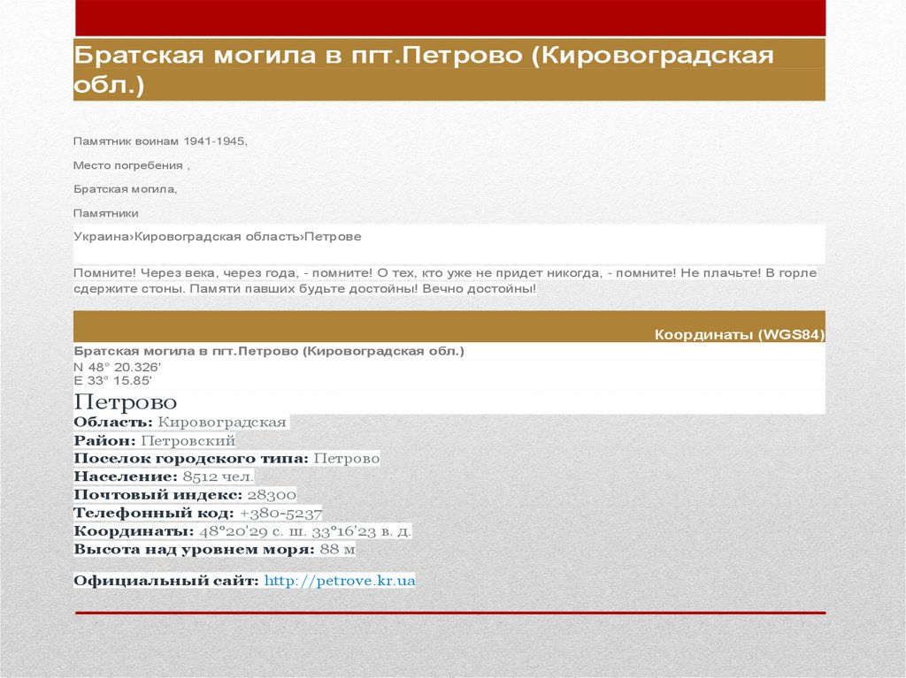 Братская могила в пгт.Петрово (Кировоградская обл.)