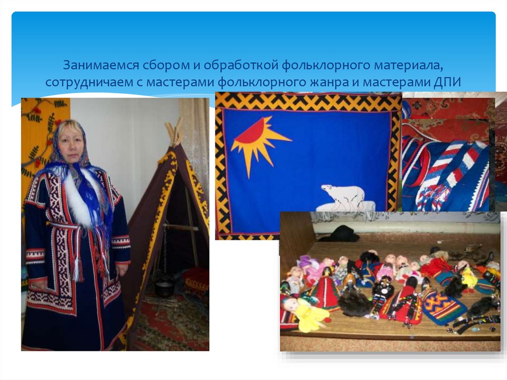 4. Занимаемся сбором и обработкой фольклорного материала, сотрудничаем с мастерами фольклорного жанра и мастерами ДПИ