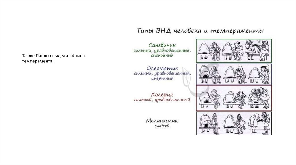 Также Павлов выделил 4 типатемперамента: