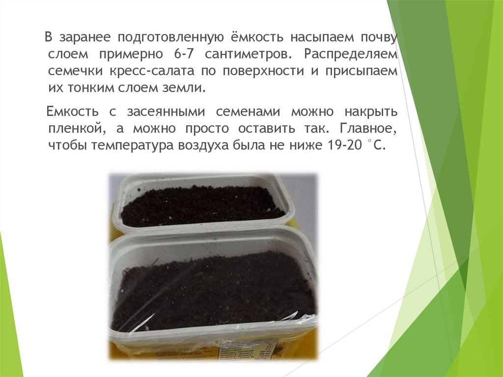 Распределяют семечки кресс-салата по