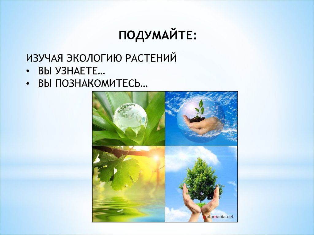 ПОДУМАЙТЕ:ИЗУЧАЯ ЭКОЛОГИЮ РАСТЕНИЙ