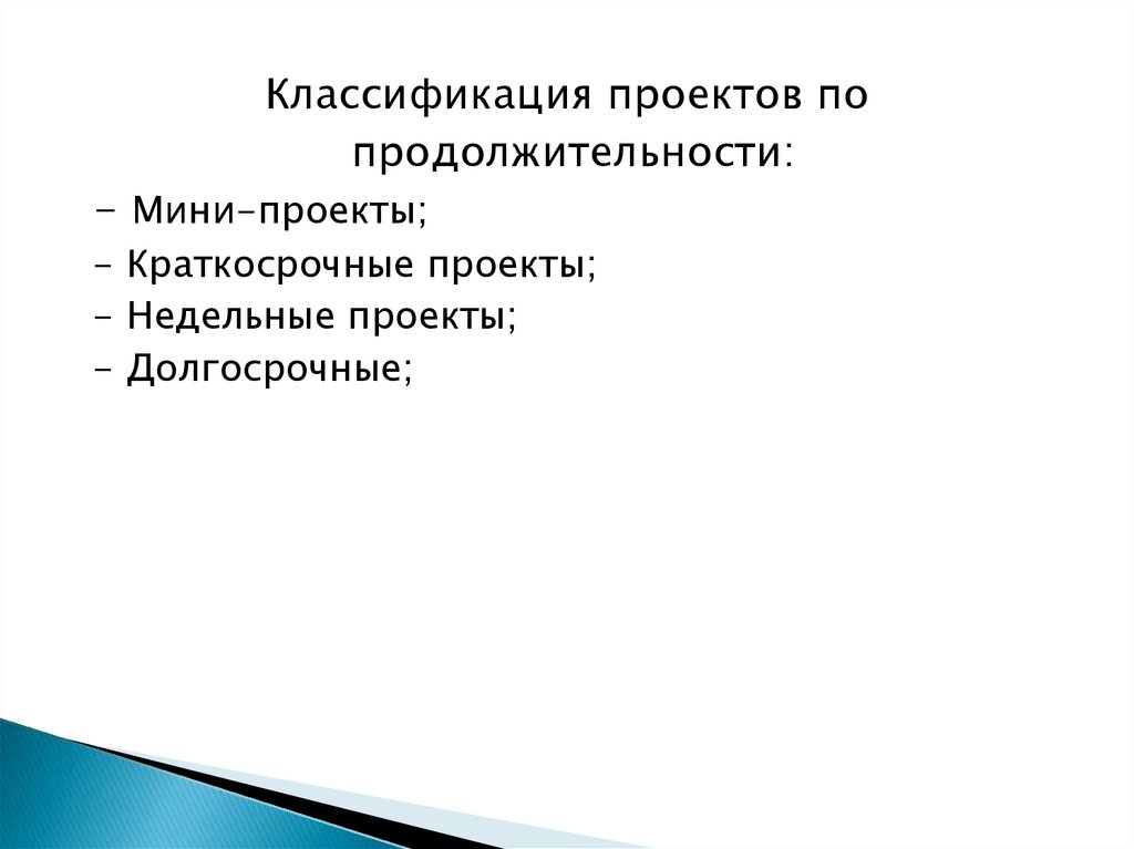 Классификация проектов попродолжительности: