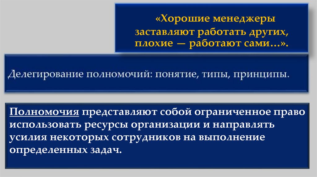 Принципы делегированияЧетко определять уровень исполнения и требуемые действия.