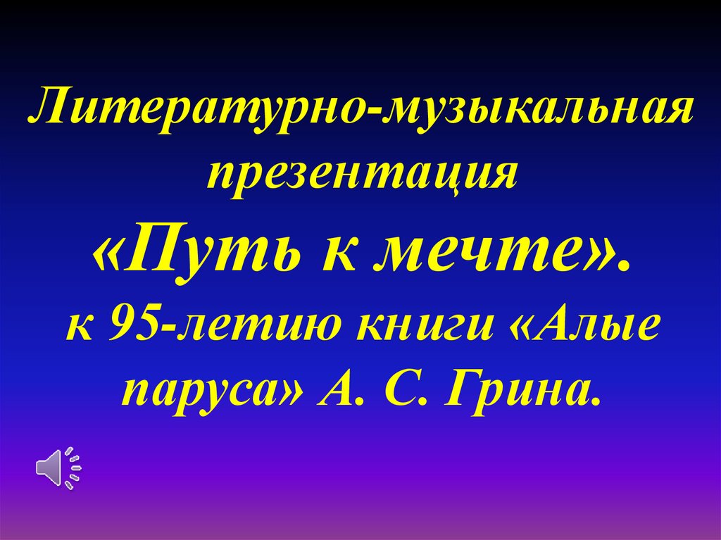Литературно - музыкальная презентация «Путь к мечте». к 95-летию книги «Алые паруса» А. С. Грина