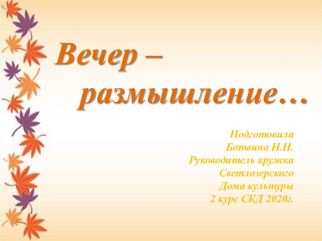 Идея: вечер-размышлений в душевной атмосфере