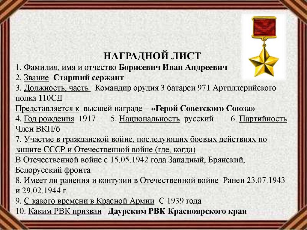 1. Фамилия, имя и отчество Борисевич Иван Андреевич
