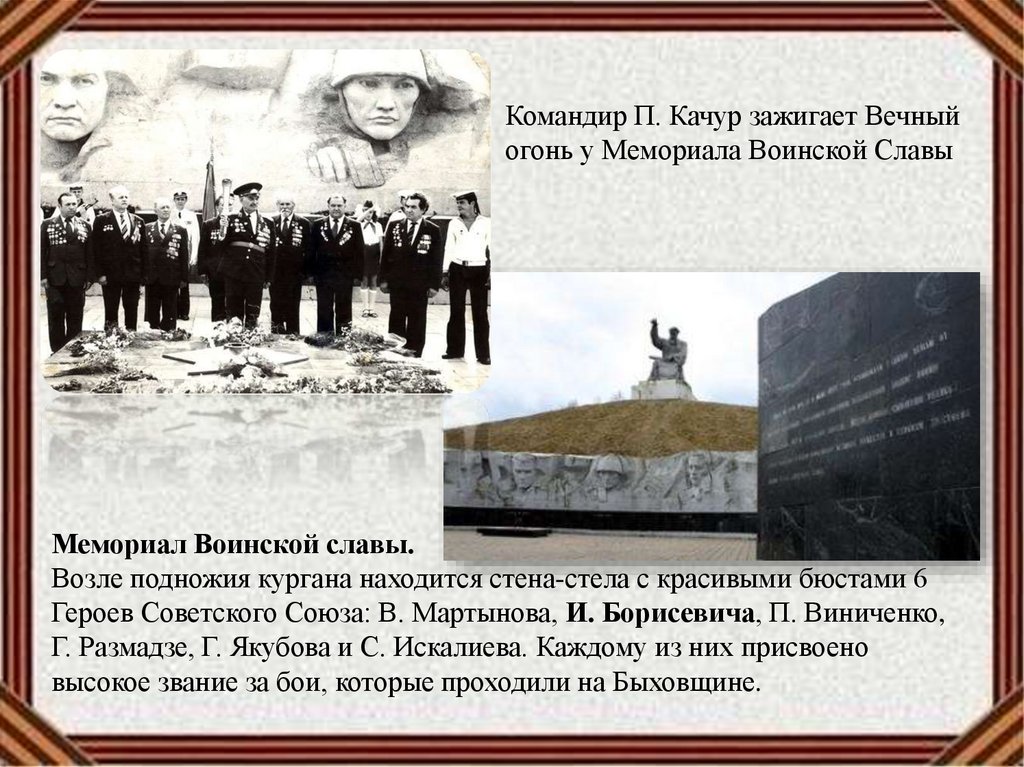 Командир П. Качур зажигает Вечныйогонь у Мемориала Воинской Славы