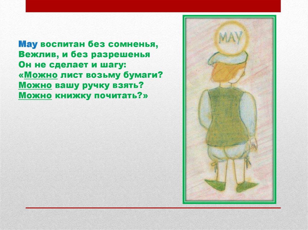 May воспитан без сомненья,Вежлив, и без разрешенья