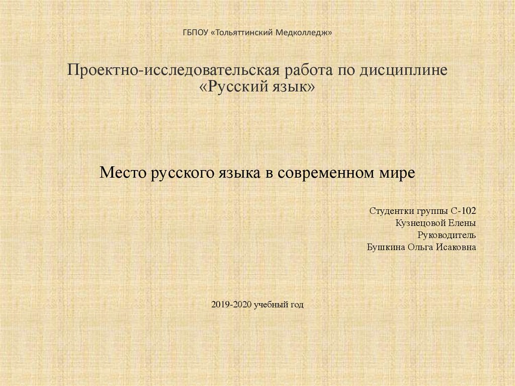 ГБПОУ «Тольяттинский Медколледж»Проектно-исследовательская работа по дисциплине