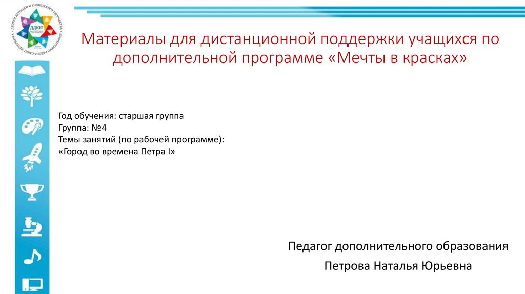 1. Материалы для дистанционной поддержки учащихся по дополнительной программе «Мечты в красках»